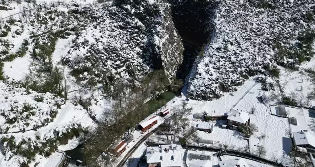 Nisan ayında 4 gün boyunca kar yağışı alan bölgedeki eşsiz manzara havadan dron ile görüntülendi.