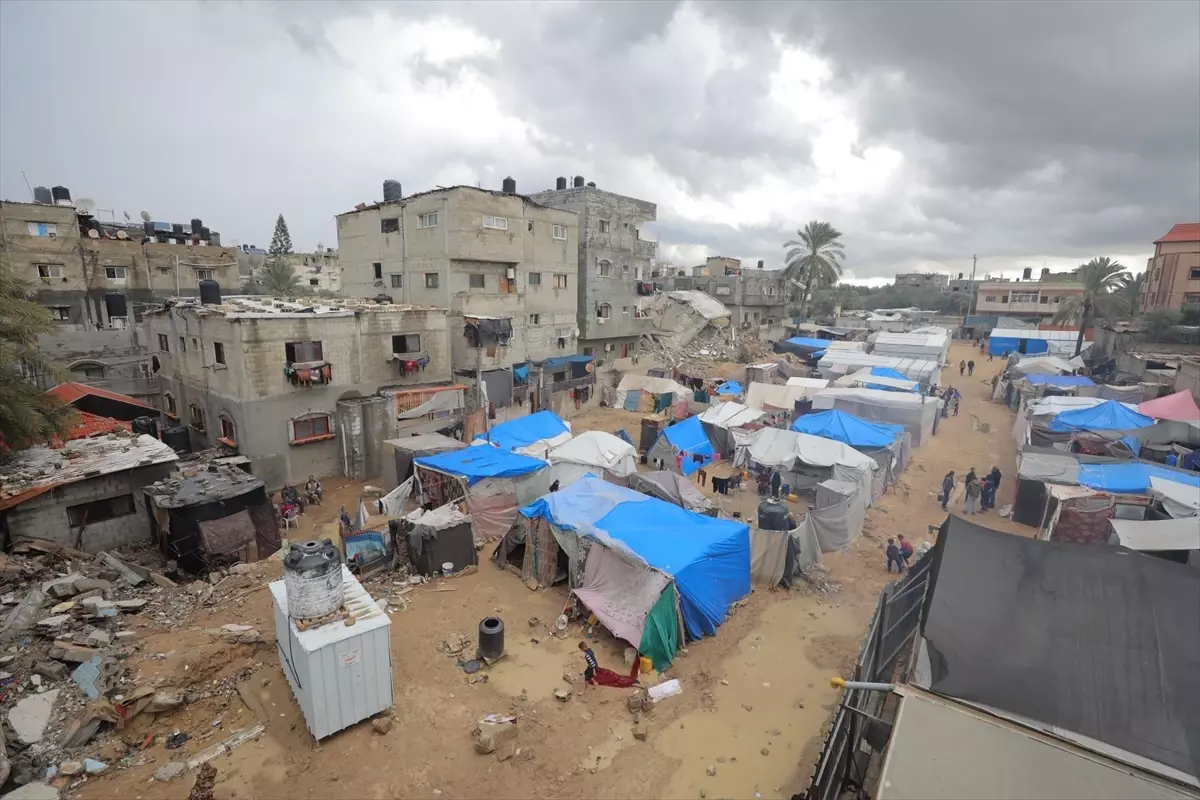İsrail’in 15 ayı aşkın süredir uyguladığı soykırımla zorla yerlerinden edilen ve ateşkesle birlikte evlerine dönmeye hazırlanan Filistinlilerin çadırları, sağanak yağış nedeniyle su ve çamur içinde kaldı.